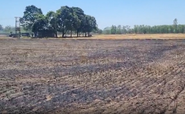 एक चिंगारी से लाखों का नुकसान...यमुनानगर में खेतों में आग लगने से गेहूं और भूसा जलकर खाक