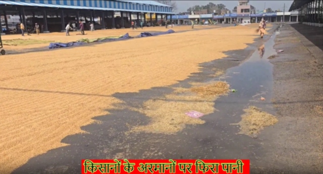 अंबाला शहर की अनाज मंडी में पिछले कई दिनों से गेहूं की आवक जारी है। मंडी प्रशासन ने दावा किया था कि उठान की प्रक्रिया तेज है और तिरपाल के पुख्ता इंतजाम हैं। लेकिन आज हुई अचानक बारिश ने इन दावों को धो डाला। जहाँ मंडी प्रशासन को किसानों की मदद करनी चाहिए थी, वहाँ किसान खुद अपनी फसल बचाने के लिए जद्दोजहद कर रहे हैं। तिरपाल की कमी और ड्रेनेज सिस्टम की बदहाली के कारण मंडी के फर्श पर पानी जमा हो गया, जिससे नीचे रखी बोरियां भी नमी की भेंट चढ़ गईं। किसानों का कहना है वे मौसम के डर से जल्दी फसल काट कर लाए थे लेकिन यहाँ भी वे मौसम की मार से नहीं बच सके।