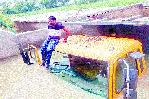 यहां से एक डम्पर शुक्रवार रात को निकलने लगा तो चालक पानी की गहराई का अंदाजा नहीं लगा पाया और उसने डम्पर अंडरपास के नीचे भरे पानी में उतार दिया। एक पल में ही डम्पर पानी में डूब गया। इसके चालक ने किसी तरह डम्पर से कूदकर जान बचाई। डम्पर की हालत यह हो गई कि 15 फुट से भी ऊंचे डम्पर का महज डेढ़ फुट हिस्सा ही पानी से ऊपर नजर आ रहा है। इसके अलावा ललितखेड़ा से भिड़ताना रोड पर जींद-सोनीपत रेल लाइन के नीचे बने अंडरपास पर भरे बरसाती पानी में एक ट्रैक्टर छतरी तक डूब गया। ट्रैक्टर चालक ने किसी तरह ट्रैक्टर से कूदकर अपनी जान बचाई। इस अंडरपास के नीचे कितना पानी भरा है, इसका अंदाजा इस बात से लगाया जा सकता है कि अंडरपास के नीचे पानी में डूबे ट्रैक्टर की छतरी ही नजर आ रही है। ट्रैक्टर का बाकी सारा हिस्सा पानी में डूब गया है।