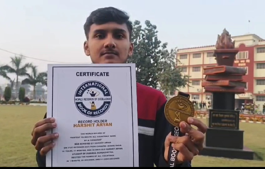 कुरुक्षेत्र(रणदीप रोड़): गुरुकुल कुरुक्षेत्र के 10वीं के छात्र हर्षित ने अपनी कमजोरी को हथियार बनाया यानि हकलाने (stuttering) की समस्या के बावजूद हर्षित का रिकॉर्ड इंटरनेशनल बुक ऑफ रिकॉर्ड्स में शामिल हो गया। दरअसल हर्षित आर्यन (15) ने संयुक्त राष्ट्र (यूएन) में शामिल 193 देशों के नाम सबसे कम समय में बोलने का रिकॉर्ड अपने नाम किया। इन देशों के नाम को बोलने में हर्षित ने सिर्फ 1 मिनट 22 सेकेंड और 91 मिली सेकेंड लिए।